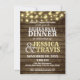 A madeira de celeiro ocidental e as luzes ensaiam o convite jante para casamentos rústicos e de celeiros tem texto e fontes completamente editáveis.