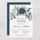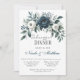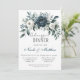 Um casamento sofisticado com um marinho azul-d'água, coroa corada floral, enfeitado com peonias, rosas e verde eucalipto em tons de azul marinho, verde e marfim. A design é aprimorada por uma caixa de cinza prateada, impressa abaixo da coroa, com layout de texto de fonte moderno. O verso do convite continua o tema com arranjo floral correspondente para um olhar coeso e elegante. Perfeito para casais que buscam eterno e papelaria de casamento clássico.