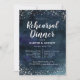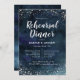Um janto de ensaio de casamento elegante... um cartão de modelo com brilho prateado... e um marinho azul de água. O design se parece com um céu noturno com estrelas prateadas. Esta galáxia inspirada já tem textos que têm todas as informações necessárias para o seu evento. Os textos são facilmente personalizáveis on-line.