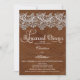 © Designs socialitas. O nosso convite de janto de ensaio único tem um design de couro e de aparência de local, um design correspondente ao nosso conjunto de casamentos de Couro e Lace. Uma combinação clássica de elementos design masculinos e femininos para um encontro romântico. POR FAVOR, OBSERVE QUE O LACE E O COURO SÃO IMAGENS QUE SÃO IMPRESSAS AO CONVITE E NÃO SÃO REAIS. Se você precisar de ajuda para personalizar ou precisar de produtos de casamento adicionais com este design, entre em contato com Designs Socialite.