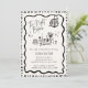 Este estilo trendy desenhado para o ensaio de casamento ilustrado com o convite de janto de ensaio de casamento apresenta uma bola de disco escrivável e elementos de mesa jantados. O design bicho-branco e peculiar inclui fontes escritas à mão e rabiscos de celebração. Estilo preto e branco para o clássico e moderno papel de carta de casamento.