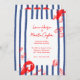 fundo listrado pintado à mão e marisco ilustrado em vermelho vivo com fatias de limão; diversão e tipo casual