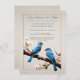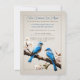 Convide convidados para o seu janto de ensaio com um convite para janto de ensaio de casamento de primavera-azuis. O design de convite apresenta um par de pássaros azuis que repousam sobre um galho de madeira com primavera contra um fundo texturizado em papel. Personalize com os nomes do noivo e da noiva junto com os detalhes do janto de ensaio. Material adicional disponível com esta design também.