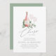 Planejar um janto temático de vinho ou de ensaio de provando de vinho ou acolher o grande evento numa adega ou vinhedo? Convide seus convidados com nossos convites para janto de ensaio elegantes para provando de vinho, com uma garrafa de vinho rosa e dois copos de vinho e enfeitados com a cor aquática verde folhas de eucalipto e folhagem. "Cheers to Love" aparece na letra de um roteiro de caligrafia. Para um toque final, personalize o rótulo da garrafa de vinho com as iniciais do casal. Perfeito para jantadas de ensaio de casamentos em vinhas, vinhas ou vinhas.