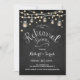 Convite para Janto de ensaio. Design de estilo russo com padrão de quadro negro. Apresenta fontes brancas de script, frascos de pedras e luzes de fadas. Envie-me uma mensagem se precisar de mais personalização.