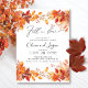 Este convite de janto de ensaio apresenta lindas folhas de outono, fazer perfeito para uma festa do outono. O convite é simples e elegante, com fundo branco e texto preto. O bando de folhas do outono adiciona um toque de chorona e diversão, e o design geral é perfeito para celebrar o próximo casamento do casal.