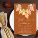 Este convite de janto de ensaio apresenta lindas folhas de outono, fazer perfeito para uma festa do outono. O bando de folhas do outono adiciona um toque de chorona e diversão, e o design geral é perfeito para celebrar o próximo casamento do casal.