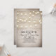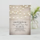 Encantador convite de janto para o ensaio de campo rústico com textura de fundo vintage e luzes de cordas suspensas. Bonita, elegante e rústica convidam perfeito para o seu janto de ensaio no celeiro ou no exterior.