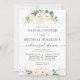 Janto de ensaio de Rosas Brancas Greenery. Este na moda e elegante Convite para Casamento apresenta lindas cores d'água pintadas à mão, Greenery White Roses. Encontre itens correspondentes na Coleção de Casamentos de Rosas Brancas de Moleração de Molerza de Água.
