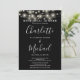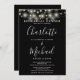 Convite jante de ensaio preto e branco elegante com luzes bonito de cordas e nomes de estilo de assinatura. Este convite para na moda pode ser personalizado com as suas informações em letra chic. Projetado por Thisnotme©