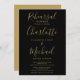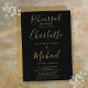 Convite jantado para ensaio de assinaturas preto e dourado legante com nomes de estilo de assinatura, este convite para casamento de na moda pode ser personalizado com as suas informações em letra chic. Projetado por Thisnotme©