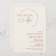 Convite para janto de ensaio de tipografia moderna. Convite minimalista do script boho terracotta clássico, mas exclusivo com número de data grande em negrito e design de texto curvo.
