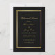 Convide seus convidados de festa de noivado de casamento em estilo com este elegante convite personalizado preto. O clássico design apresenta um script de ouro falso com todos os detalhes de seu janto para personalizar bordado com um quadro de ouro falso brilhante em um simples fundo preto. Os melhores votos para o seu casamento e casamento! Desenhada por Susan Coffey.