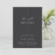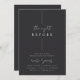 Convide os convidados a comemorar o feliz casal com estes convites de janto de ensaio modernos e mínimos. Design simples e mínimo apresenta "a noite anterior" em uma combinação de script branco manuscrito e letras clássicas de serifa, com os detalhes de seu evento embaixo de um fundo preto de cinza suave, acentuado com delicado detalhamento de linha vertical. Projetado para combinar com a nossa coleção de casamento em linha.