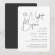 Convide os convidados a comemorar o feliz casal com estes convites para chás modernos e mínimos de casais em preto e branco clássico. Simples design apresenta "a noite anterior" em um roteiro casual manuscrito, com seus detalhes de eventos abaixo em modernas letras negras suaves cinzas.