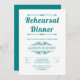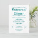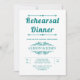 Vintage elementos e convite de janto para o ensaio de casamento da tipografia branca e azul lacrimogênea. Esta elegante design de casamento exibe o texto "Janto de ensaio" em letras negrito e elementos de vintagem que formam quadros para o texto.