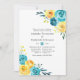 Turquesa e amarelo - o convite jantado para o ensaio floral de chá e limão com sotaque de coral com flores aquarelle e folhagem.