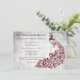 Convide convidados para o seu janto de ensaio com um convite para janto de ensaio de casamento da Red Peacock Leaf Vine. O design de convite apresenta um fundo de cinza de luz com um pavão vermelho vibrante com um embelezamento de vinha de folha. Personalize com os nomes do noivo e da noiva junto com os detalhes do janto de ensaio. Material adicional disponível com esta design também. Precisa de ajuda para a personalização? Peço-lhe que me contacte e que elabore a redação e os pormenores para que este design seja ajustado para vossa satisfação.