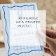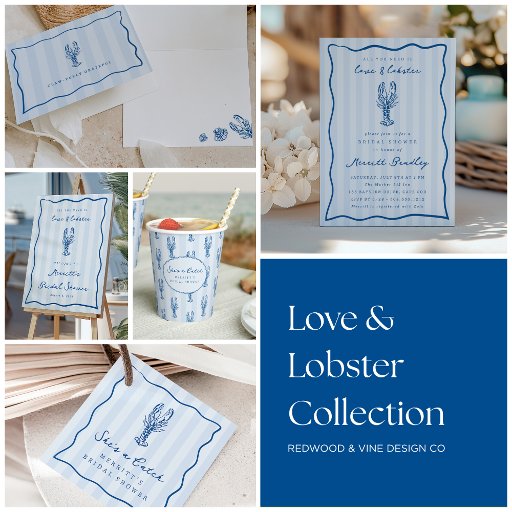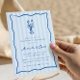Nosso convite para janto de ensaio de lagosta de verão é perfeito para sua celebração à beira-mar! A design costeira branca apresenta a inscrição azul-mediterrânica e ilustrações sobre um fundo azul-claro de faixa de cabana. Um rabisco de lagosta desenhado à mão senta-se sobre os seus detalhes de eventos, enquadrado por uma borda ondulada de vieiras. Inclui espaço para o ensaio de cerimônia de casamento e para a celebração subsequente.