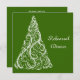 Convide os convidados para a festa de janto de dezembro honrando a noiva e o noivo para estarem com o Janto de Ensaios de Árvore de Natal Verde e Festivo Convite para Casamento no inverno de Ensaios de Árvore de Natal Verde. Este janto elegante e de ensaio de inverno apresenta um intrincado design de árvore de Natal branca sobre um fundo verde.