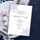 Convide os convidados para a sua reunião honrando a noiva e o noivo para estarem com os festivos flocos de neve azuis no Convite para Janto de Ensaios de Casamento no inverno Branco. Os flocos de neve de cor azul intricada adornam os cantos desta elegante festa de janto wintery, convidada com fundo branco. Disponível como um convite impresso para envio por correio ou como um download digital para fácil compartilhamento digital online.