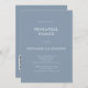 Convite para Janto de ensaio de código QR azul moderno e simples. A cor e o tipo da fonte podem ser alterados através do menu de edição. Você também pode alterar as cores do texto e do plano de fundo em ambos os lados, se desejar. Adicione seu código QR ao seu site de casamento no verso como uma opção conveniente para seus convidados para RSVP. Os códigos QR podem ser criados gratuitamente on-line. Basta pesquisar "Criador de código QR" e selecionar um dos criadores livres. Você também pode remover o código QR se desejar.