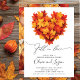 Este convite de janto de ensaio apresenta um belo coração foliar de outono, fazer perfeito para uma festa do outono. O convite é simples e elegante, com fundo branco e texto preto. O coração das folhas do outono adiciona um toque de capricho e diversão, e o design geral é perfeito para celebrar o próximo casamento do casal.