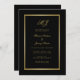 Convide seus convidados de janto de ensaio de casamento em estilo com este elegante convite de monograma preto e ouro personalizado. O design simples apresenta as iniciais falsas do monograma dourado em um script falsa de ouro junto com todos os detalhes de seu janto para personalizar bordado com um quadro brilhante de ouro falso em um simples fundo preto. Os melhores votos para o seu casamento e casamento! Desenhada por Susan Coffey.