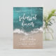 O convite para o janto de ensaio sobre temas da costa romântica apresenta um belo abstrato de cor aquosa, cor-de-água, fundo oceânico cintilante e praia, tocado com na moda e detalhes elegantes do evento de fontes, moderno e simples, excelente para o casamento da praia de areia, casamento de destino tropical, casamento sobre o tema do oceano costeiro. Veja todas as peças correspondentes na coleção.