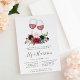 Os convites florais elegantes para jantadas temáticas de vinhos ou de ensaio de provandos de vinho apresentam dois copos de vinho tinto enfeitados com flores de aquarela em tons de joias ricas que combinam com a nossa coleção de Radiant Bloom. Personalize com seus detalhes de janto de ensaio abaixo em uma mistura de blocos, serifas e tipos de caligrafia. Inclui espaço para o ensaio de cerimônia de casamento e janto ou celebração.
