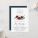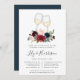 Os convites florais elegantes para jantadas temáticas de vinhos ou de ensaio de provandos de vinho apresentam dois copos de vinho branco enfeitados com flores de aquarela em tons de joias ricos que combinam com a nossa coleção de Radiant Bloom. Personalize com seus detalhes de janto de ensaio abaixo em uma mistura de blocos, serifas e tipos de caligrafia. Inclui espaço para o ensaio de cerimônia de casamento e janto ou celebração.