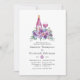 Flores roxas num convite para o ensaio de provandos de vinho buquê pintado à mão.