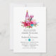 Convite jantado para ensaio de provando de vinho floral, cor-de-rosa-chico e azul-turquesa, cor-de-água azul-boho.