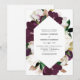 Plum escuro simples e hellebore branco e tulipas em tempo de inauguração, janto de ensaio de casamento personalizável para suas especificidades de evento.