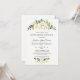 Design de cartão elegante, com flores brancas delicadas e folhas verdes, cor d'água, cruz e quadro dourados falsos, divisor floral, sobre fundo branco. No buquê das flores brancas, divisor floral, iniciais. Use a ferramenta Personalizar para adicionar suas informações, alterar fontes, cores da fonte. Para obter itens correspondentes, visite minha coleção de flores brancas delicadas.