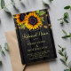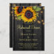 Ensaio de casamento russo no campo janta na moda a convite modelo no campo castanho-escuro sobre fundo de madeira apresentando grandes buquês de girassóis de ouro amarelo, cordas de luzes cintilantes e um roteiro falsa de tipografia de ouro. +++++++++++++++++ Fácil de personalizar com seus detalhes! Você pode personalizá-lo alterando ainda mais as fontes e as cores das letras. ++++++++++++ O convite é adequado para o verão ou outono para o jardim ao ar livre / festas/churrascos de fazendas rústicas de quintal.