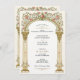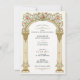 Este elegante convite de janto de ensaio de casamento vitoriano apresenta um grande arco de ouro enfeitado com a subida de videiras de rosas cor-de-rosa e um delicado verde. Os intrincados detalhes florais e a coluna clássica de sofisticação e encanto romântico do eterno exude. Perfeito para casais que procuram artigos de casamentos inspirados em vintage com uma estética luxuosa e um toque de elegância floral.