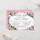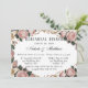 Um convite de casamento sofisticado apresenta uma fronteira floral ao estilo Rococo, que enquadra um espaço central para uma mensagem personalizada e evoca uma sensação de grandiosidade vintage. A fronteira é meticulosamente detalhada com rosas cor-de-rosa pinceladas, lírios creme e rolhas de ouro girando, acentuadas com detalhes de folha de ouro e gotículas delicadas de pérolas, todas colocadas contra um branco nítido e texturizado complementando a estética geral, ao mesmo tempo em que fornece amplo espaço interior para uma mensagem sentida e criando uma manutenção do eterno.
