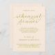 Este convite de janto de ensaio simples, mas elegante, apresenta uma fonte de script manuscrito branco contra um fundo de rosa claro. Os detalhes do evento podem ser personalizados para o seu participante. Escolher a opção de papel metálico dará ao texto dourado uma tela bonito.