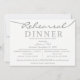 Menos são esses convites para Janto de ensaio Elegante de Script branco e prateado com design simples e com base em texto e todas as salas de detalhes certamente impressionarão seus convidados