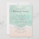 O convite para o janto de ensaio romântico costeiro apresenta belos abstrato de turquesa com cor-d-água cintilante de fundo oceânico e praia, tocado com na moda e detalhes elegantes de eventos de fontes, modernos e simples, excelente para o casamento de praia de areia, casamento de destino tropical, casamento com temas do oceano costeiro. Veja todas as peças correspondentes na coleção.