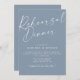 Essa elegante e minimalista design apresenta as palavras Janto ensaial em um roteiro de caligrafia moderno contra um fundo azul poeirento, e uma coroa de lua botânica no verso do cartão. Personalize facilmente informações importantes, bem como as iniciais do monograma escolhido. Vai combinar lindamente com qualquer tema moderno de casamento.