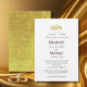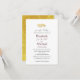 Elevem a vossa oportunidade com esta elegante placa de Janto de Ensaios de Casamentos com um fundo de cor Dourada. A frente é simples com alianças de casamento. O roteiro elegante é fácil de mudar para personalizar seu Cartão de Jantar de ensaio de Casamento Facilmente alterado para suas informações.