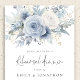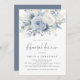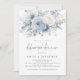 Elegante Dusty Blue Florals ensaiando convite para Janto. Disponível digitalmente e impresso. As flores azuis-claras e brancas de verão fluem do topo. O janto de ensaio está em um script de estilo de escrita manual definido. Personalize facilmente o texto para seus próprios detalhes.