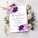 Um belo convite de janto de ensaio de casamento elegante e floral prateado roxo. Você poderá editar todos os campos com seus detalhes.