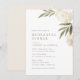 Convide amigos e familiares para o seu janto de ensaio com este convite elegante, com flores brancas de aquarela e verde e um fundo de marfim.