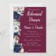 Um convite de festas de ensaio elegante e elegante com design elegante e floral. Estes convites de janto de ensaio apresentam lindas flores azuis e cor-de-rosa, marinhos, em fundo burgundy, juntamente com um pouco de verde. A fonte com script contém todos os detalhes de celebração do noivado.