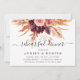 Este convite de Janto de ensaio inclui flores de aquarela rustica em laranja queimada, ouro, terracota, burgundy, rosa-pincel com bege e grama-pampas marrom. Para personalização mais avançada deste design, clique no link "personalizar mais". Itens correspondentes também estão disponíveis.