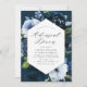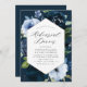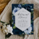 design floral de aquarelas com flores azuis-claras e azuis-marinhos. O texto preto pode ser personalizado.