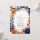 Celebre a noite antes do grande dia com este elegante convite para janto de ensaio floral em laranja e marinho. Apresentando lindas flores aquáticas e uma paleta colorida refinada, esta design é perfeita para um janto de ensaio de casamentos de jardim ou ao ar livre. Os sotaques marinho e laranja trazem uma aparência nova e contemporânea, enquanto os florais suaves adicionam um toque romântico eterno. Este convite constitui a palco de uma noite memorável de celebração e antecipação.